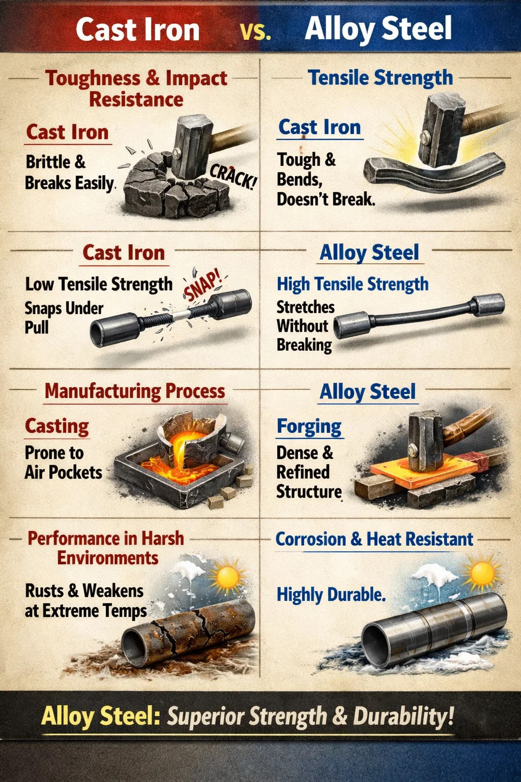 Temperature et Corrosio Resistentia: Adiectis metallis ut chromium et nickel, mixtura ferri potest fieri valde repugnant rubigine et calore. Quamvis ferrum eiectum certum modum indumenti resistendi habeat, effectus eius in calidissimis vel infimis temperaturis velociter decrescat, et etiam magis ad rubiginem in atmosphaera aptior est.